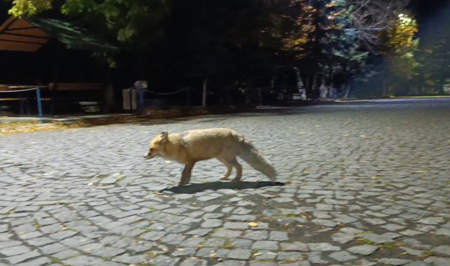 Kars'ta kent merkezinde gezintiye çıkan vatandaş karşısına çıkan tilkiyi eliyle bisküvi vererek besledi. O anları da telefonuyla kayda aldı.
