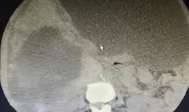 Genel Cerrahi Uzmanı Opr. Dr. İsmet Çelik, Gastroenteroloji Uzmanı Doç. Dr. Aydın Aktaş ve ekibi tarafından yapılan operasyonda 76 yaşındaki Asiye Taşdelen'in karaciğerinde toplamda 90 santimetreye ulaşan 3 ayrı kedi-köpek kisti ameliyatla çıkartıldı.