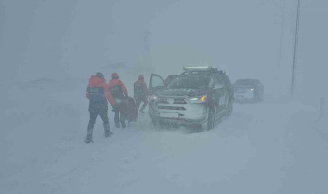 Kayseri'de Erciyes yolunda tipi nedeniyle mahsur kalan 2 kişi AFAD ekipleri tarafından kurtarıldı.
