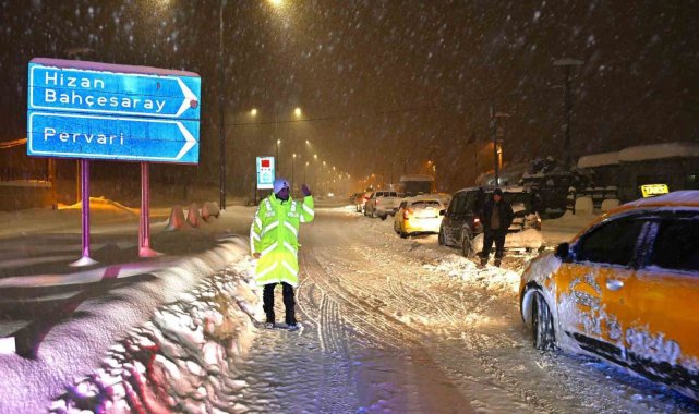 Bitlis'te etkili olan yoğun kar yağışı ve tipi, ulaşımda aksamalara neden olurken, olumsuz hava şartlarına rağmen görevlerinin başında olan polis ekipleri yolda kalan vatandaşların yardımına koştu.