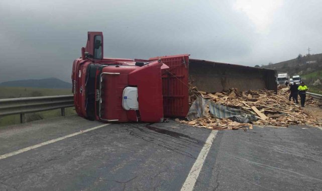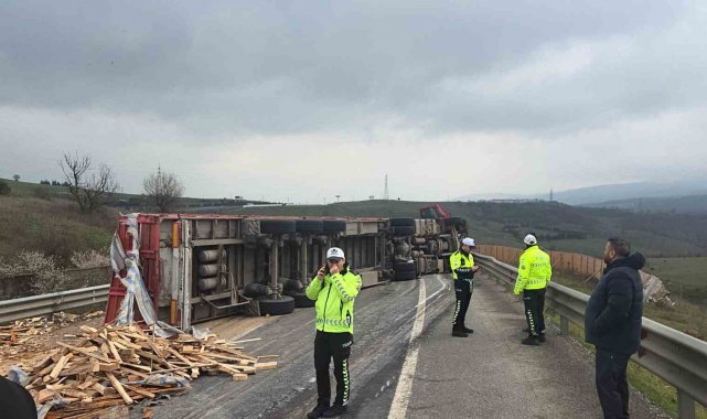 Kaza, Yalova-Bursa kara yolu Süpürgelik mevkiinde meydana geldi. Yalova istikametinden Bursa istikametine seyreden İbrahim Taşcan (40) yönetimindeki 16 Y 0017 plakalı tahta yüklü tır, bilinmeyen bir nedenle kontrolden çıkıp devrilerek sürüklendi. Kazada sürücü hafif yaralanırken, tırın kasasındaki tonlarca tahta yola saçıldı. Yolu tamamen kapatan kaza nedeniyle Yalova-Bursa yolunda trafik durdu.