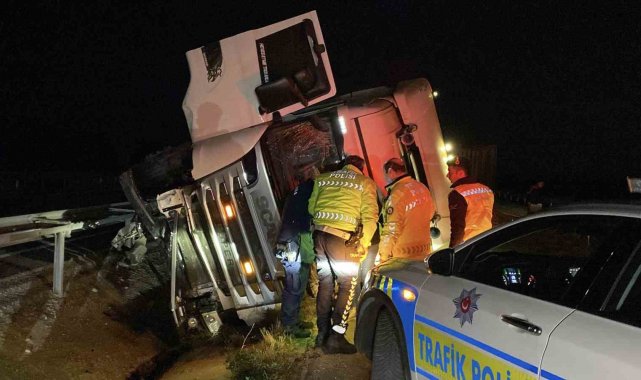 Kaza, Çorum-Samsun karayolunun 32. kilometresinde meydana geldi. Edinilen bilgiye göre, Umut Furkan A. idaresindeki 55 BK 143 plakalı Scania marka tır, sürücüsünün direksiyon hakimiyetini kaybetmesi neticesinde devrildi. Kazada tırın dorsesinde bulunan hayvan yemi yola saçılırken, sürücü yaralandı. Kazayı gören vatandaşlar durumu 112 Acil Çağrı Merkezine bildirdi. İhbar üzerine olay yerine sağlık, itfaiye, jandarma ve polis ekipleri sevk edildi. Olay yerine gelen sağlık ekipleri tarafından ilk müdahalesi yapılan yaralı sürücü, Hitit Üniversitesi Erol Olçok Eğitim ve Araştırma Hastanesine kaldırıldı.
