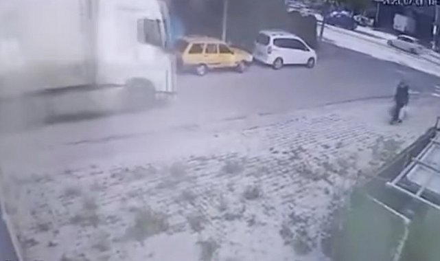 Olay, Sürsürü Mahallesi'nde meydana geldi. Bir tır sürücüsü, dönüş yaptığı sırada park halindeki hafif ticari aracı fark edemedi. Dorseye takılan araç, metrelerce sürüklendi. Tır sürücüsü kazayı fark edemeyerek yoluna devam etti. Bu anlar güvenlik kameralarına yansıdı.
