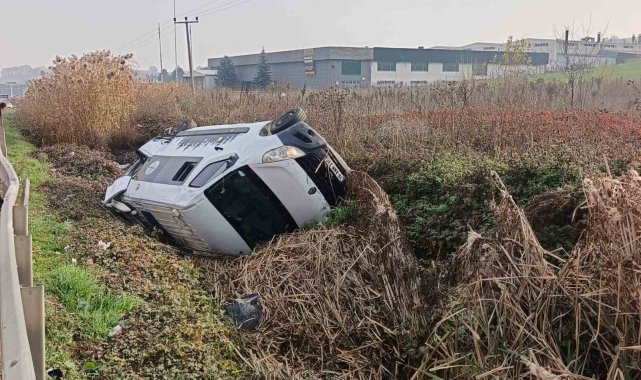Bursa'nın İnegöl ilçesinde meydana gelen kazada tır ile çarpışan minibüs karavan şarampole yuvarlanması sonucu, kadın sürücü yaralandı.
