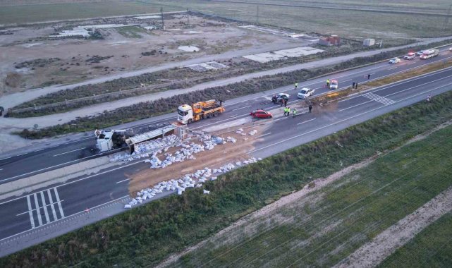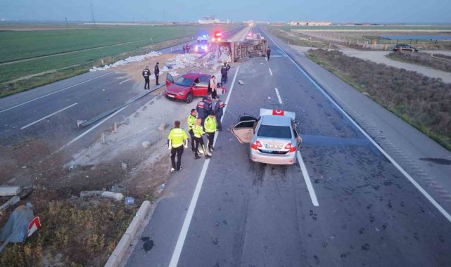 Tır refüje devrildi, yardım etmek için duran araca başka araç çarptı: 6 yaralı