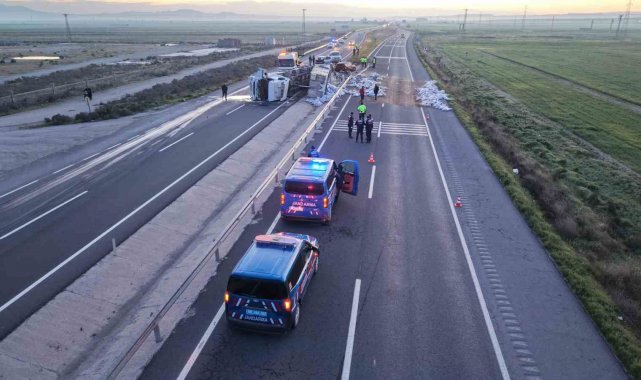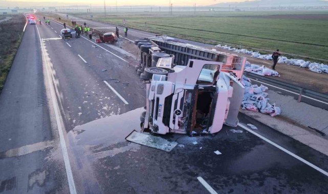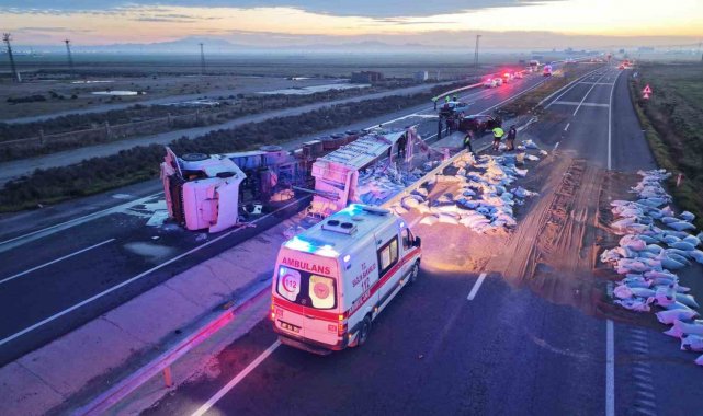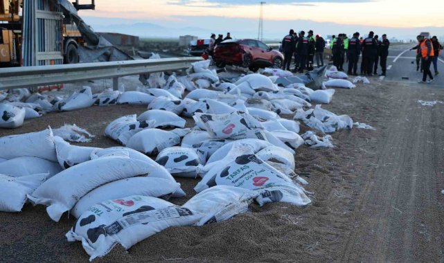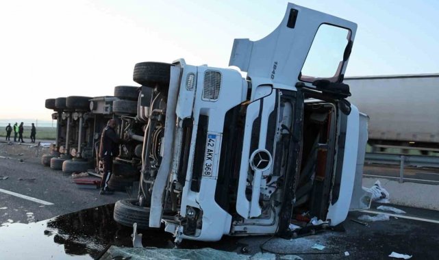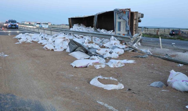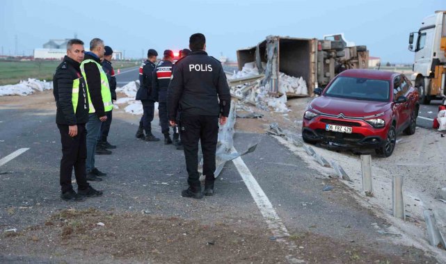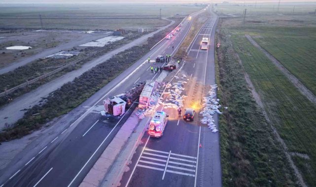 Aksaray'da sürücüsünün direksiyon hakimiyetini kaybettiği hayvan yemi yüklü tır refüje devrildi. Kazayı görerek yardım etmek için yolda duran otomobile ise başka bir araç çarptı. Her iki kazada toplam 6 kişi yaralandı.