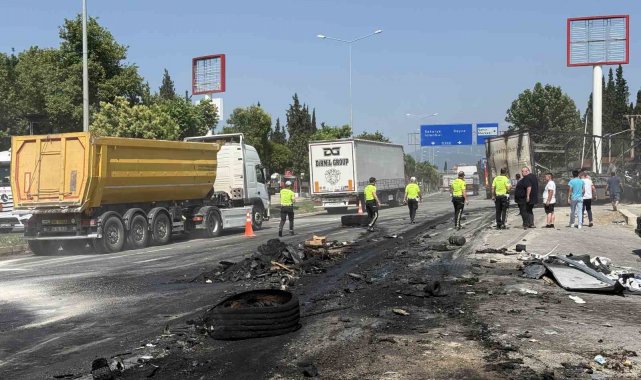 1 kişinin öldüğü, 2 kişinin yaralandığı facia gibi kaza anı güvenlik kamerasına yansıdı. Görüntülerde, sol şeritten seyir halinde olan tırın kontrolden çıkarak karşı yöne geçmesi ve karşı yönde sol ile orta şeritte seyreden tırlara çarpması yer alıyor.
