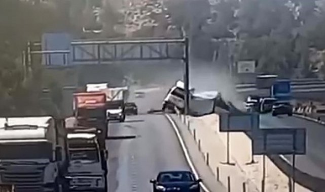 Öte yandan, kazanın güvenlik kamerası görüntüleri ortaya çıktı. Görüntülerde, sol şeritten seyretmekte olan tırın aniden kontrolden çıkarak yol kenarında bulunan direğin ayağına çarptığı görüldü. Çarpmanın şiddetiyle dorsenin kabinden ayrıldığı ve kabinin sürüklenmeye devam ettiği görülürken, karşı yönden seyreden bazı araçların kaza nedeniyle savrulan parçalardan son anda kurtulduğu görüldü.