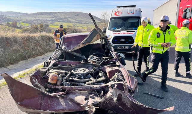Tıra çarpan otomobil hurdaya döndü: Sürücü şans eseri kurtuldu