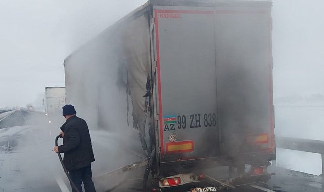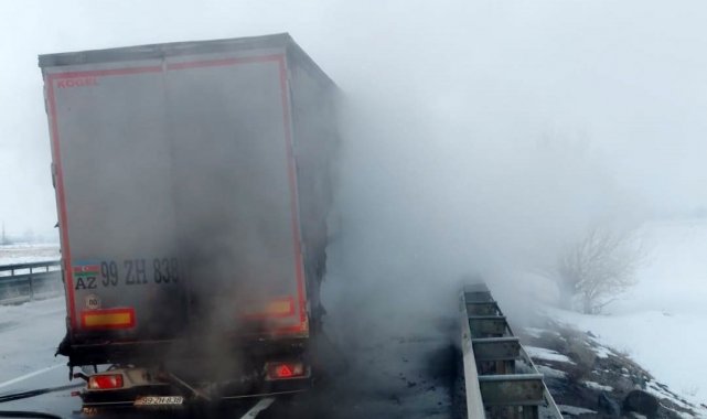 Erzincan-Erzurum kara yolunda Azerbaycan plakalı tırın dorsesi yandı. Yol bir süre ulaşıma kapandı.