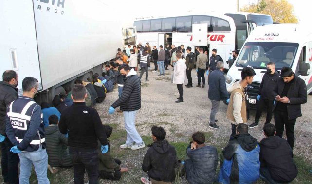 Sivas'ın Suşehri ilçesinde arama yapılan tırın dorsesinde gizlenmiş 28 kaçak göçmen bulundu.