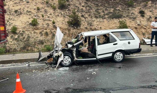 Uşak'ta otomobilin tırın dorsesine arkadan çarpma sonucu otomobilde bulunan karı koca ağır yaralandı.