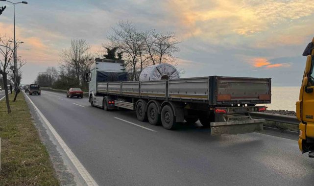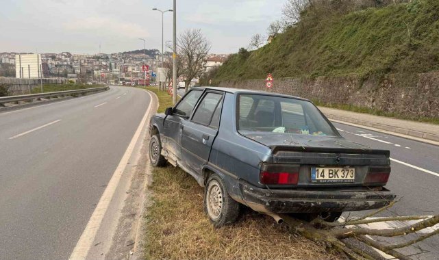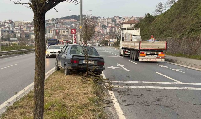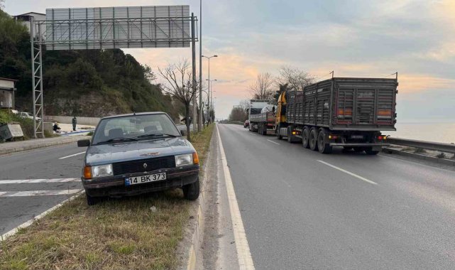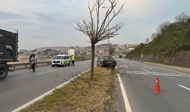 Zonguldak'ın Alaplı ilçesinde meydana gelen trafik kazasında, tırın çarptığı otomobil refüje çıktı. Maddi hasarın oluştuğu kazada yaralanan olmazken, araç içindekiler büyük panik yaşadı.