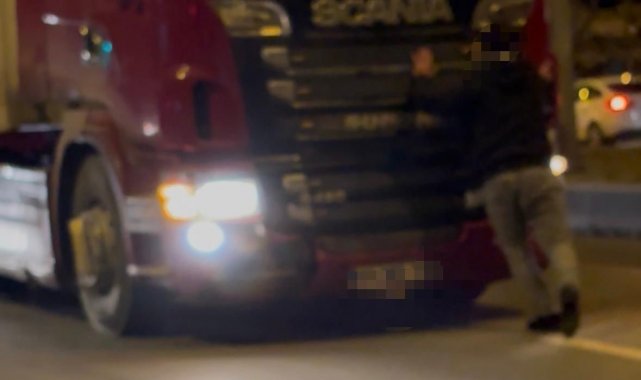 Tırın önüne atladı, trafiği kilitledi