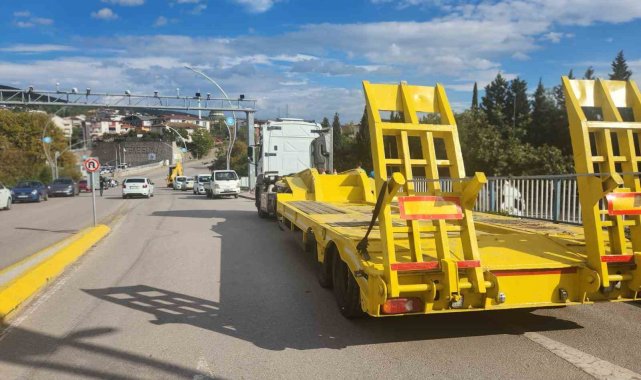 Tırın üstündeki asfalt silindiri yola devrildi: 1 yaralı