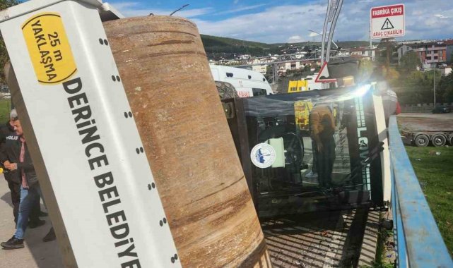 Olay, saat 15.00 sıralarında Yenikent Mahallesi Ertuğrul Gazi Caddesi'nde meydana geldi. Sürücüsünün ismi ve plakası öğrenilemeyen tırın üzerindeki asfalt silindiri bilinmeyen sebeple yola devrildi. Olayda asfalt silindirinde bulunan F.E. yaralandı. 112 Acil Çağrı Merkezi'ne yapılan ihbar üzerine bölgeye sağlık, polis ve itfaiye ekipleri sevk edildi. F.E., sağlık ekiplerinin ilk müdahalesinin ardından Derince Eğitim ve Araştırma Hastanesi'ne kaldırıldı. Kaza nedeniyle cadde bir süre trafiğe kapandı. Silindir, iş makinesiyle yoldan kaldırılırken, trafik normal seyrine döndü.