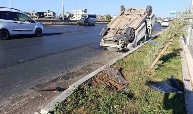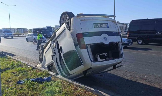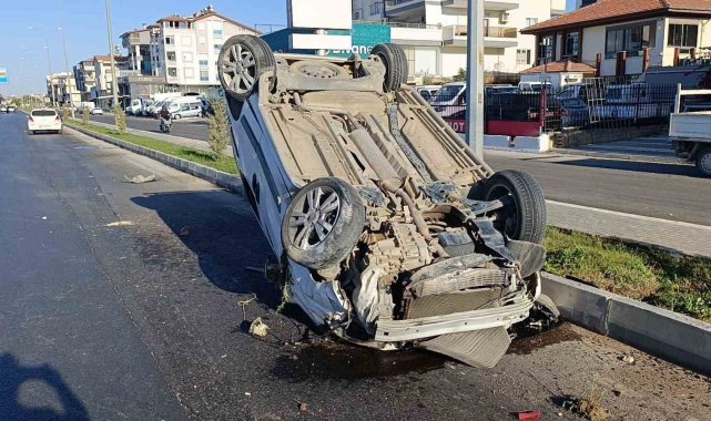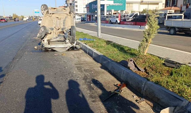 Tırla çarpışan araç havada takla atıp ters döndü, sürücü hafif yaralandı