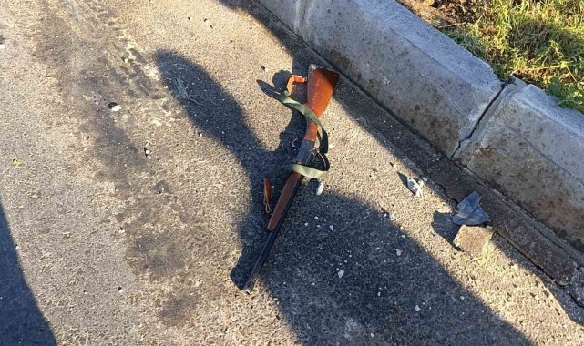 Öte yandan, takla atarak ters dönen hafif ticari araçtan yola bir av tüfeği düştüğü gözlendi.