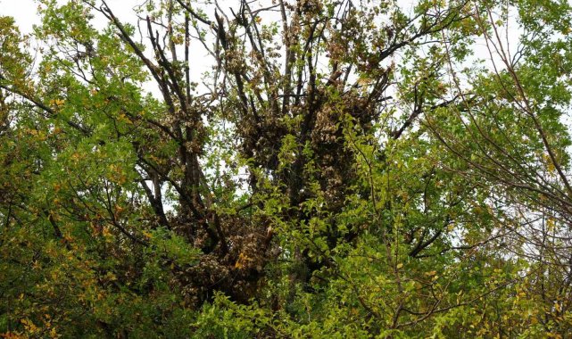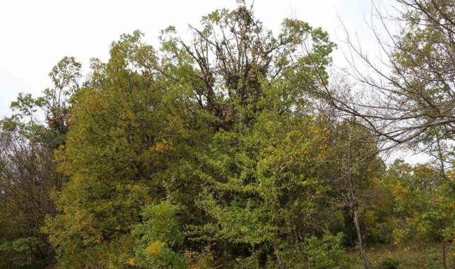 Tırmandıkları ağaçta meşe palamudu yiyen ayılar kamerada