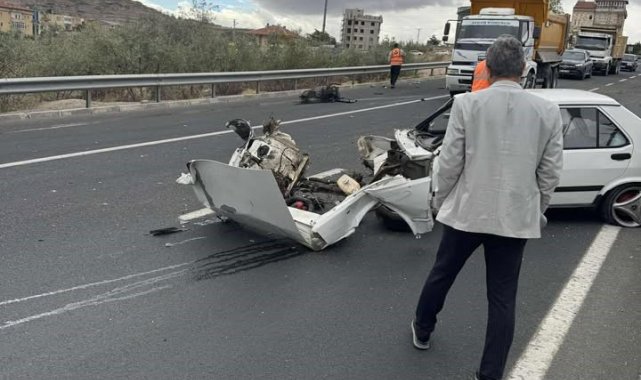 Nevşehir'de kontrolden çıkan Tofaş marka otomobil orta refüjde bulunan aydınlatma direğine çaptı. Çarpmanın etkisiyle otomobilin motoru metrelerce uzağa fırlarken, kazada 2 kişi yaralandı.