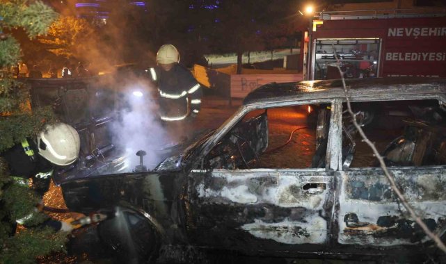 Nevşehir'de Tofaş otomobil park edildikten kısa bir süre sonra yanmaya başladı. Yanan otomobil iki dakika içinde alev topuna döndü.