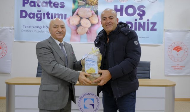 Tokat Gaziosmanpaşa Üniversitesi (TOGÜ) tarafından üretilen yerli patates çeşitlerine ait sertifikalı tohumluklar Reşadiye'de üreticilere dağıtılarak bölgede verim artışı ve hastalıklara karşı güvenli üretim hedeflendi.