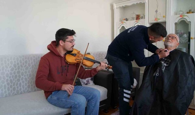 Tokat Belediyesi Evde Bakım ekipleri, yaşlı ve bakıma muhtaç vatandaşlara temizlik hizmetinin yanı sıra canlı müzik sürpriziyle moral dolu anlar yaşattı.