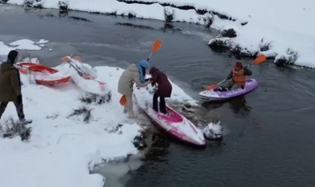 Tokat ile Ordu sınırları arasında yer alan Perşembe Yaylası'ndaki menderesler, dondurucu soğuğa rağmen doğa ve spor tutkunlarını ağırladı. Hava sıcaklığının sıfırın altında 10 dereceye kadar düştüğü yaylada, Tokat ve Ordu'dan giden doğaseverler kano sporu yaptı. Buzla kaplanan kıvrımlı mendereslerde kanolarıyla ilerleyen sporcular, zaman zaman kürekleriyle buzları kırarak yol aldı. Zorlu şartlara rağmen eşsiz doğa manzarası eşliğinde yapılan kano etkinliği, ortaya kartpostallık görüntüler çıkardı.