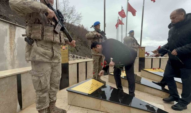 Vali Yardımcısı Asım Aköner ve katılımcılar, anıta gül bıraktı. Sazak köyü yakınlarında 7 Aralık 2009'da teröristlerce düzenlenen saldırıda, Uzman Çavuş Harun Arslanbey ile erler Onur Bozdemir, Kemal Bide, Ferit Demir, Yakup Mutlu, Cengiz Sarıbaş ve Fatih Yonca şehit olmuştu.