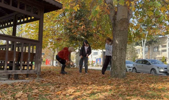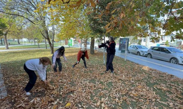Tokat'ta belediyenin yaprakları temizlemediği parklarda renk cümbüşü oluştu