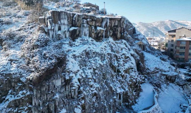 İlçe merkezi Cumhuriyet Caddesi üzerinde bulunan şelale, hava sıcaklıklarının sıfırın altına düşmesiyle tamamen dondu. Şelaleden akan suların buz tutmasıyla oluşan sarkıtlar ve buz tabakaları, ortaya kartpostallık manzaralar çıkardı. Soğuk havanın etkisiyle şelalenin çevresinde metrelerce uzunluğa ulaşan buz sarkıtları dikkat çekerken, beyaz örtüyle kaplanan kayalık alanlar görsel güzellik sundu. Donan şelale hem ilçe sakinlerinin hem de yoldan geçen vatandaşların ilgisini çekti.