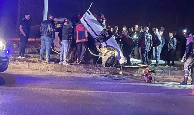 Tokat'ta direğe çarpan Tofaş kağıt gibi ezildi