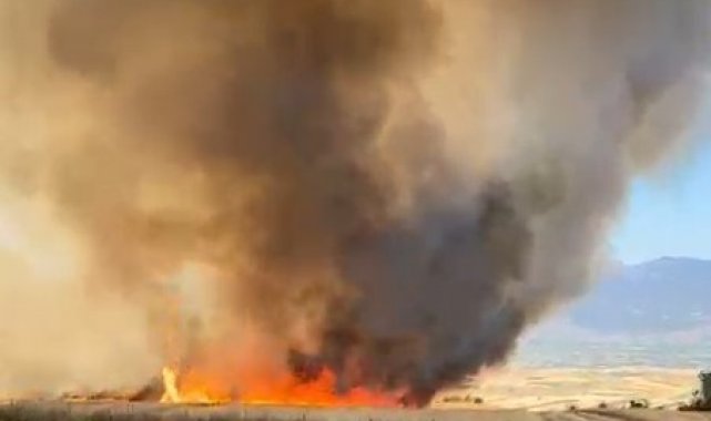 Tokat'ta ekili arazide çıkan yangına müdahale ediliyor