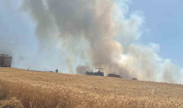 Tokat'ın Erbaa ilçesinde buğday tarlasında çıkan yangına itfaiye ekipleri köylülerle birlikte müdahale ediyor.