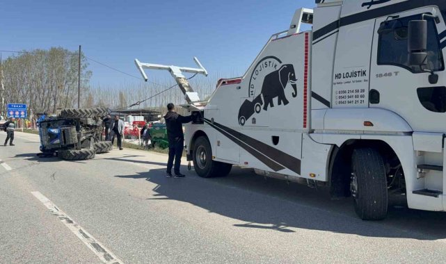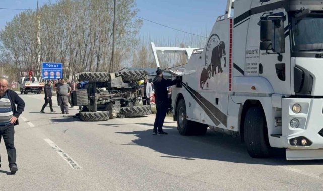 Tokat'ta devrilen traktör karayolunu ulaşıma kapattı.