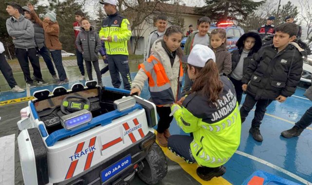 Direksiyon başına geçen minikler, öğrendikleri bilgileri birebir deneyimleme fırsatı buldu. Eğitimlerin sonunda jandarma ekipleri tarafından öğrencilere trafik bilincini artırmaya yönelik düdük ve kitap hediye edildi.