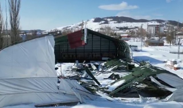 Tokat'ta kapalı halı sahanın çatısı kar yüküne dayanamadı