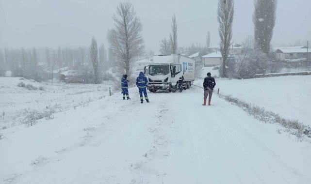 Tokat'ın Sulusaray ile Yeşilyurt ilçelerinde yoğun kar yağışı nedeniyle ağır tonajlı araçlar yolda kaldı, sürücüler zincir takarak ilerlemeye çalıştı.