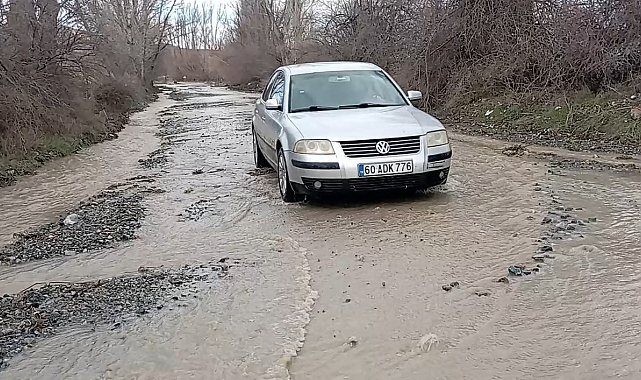 Tokat'ta köy yolları eriyen karlar nedeniyle su altında kaldı