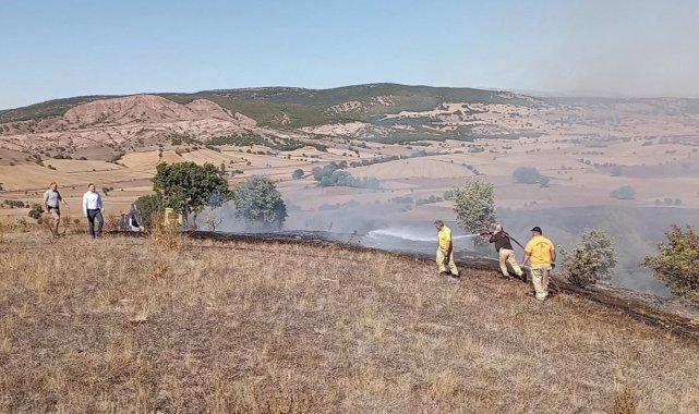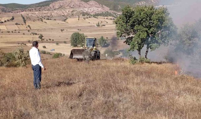 Tokat'ın Artova ilçesinde çıkan arazi yangınına ekipler ve vatandaşlar birlikte müdahale ediyor.