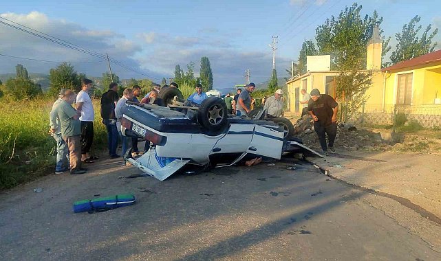 Tokat'ta çarpışma sonrası otomobilin ters döndüğü kazada 1 kişi yaralandı.