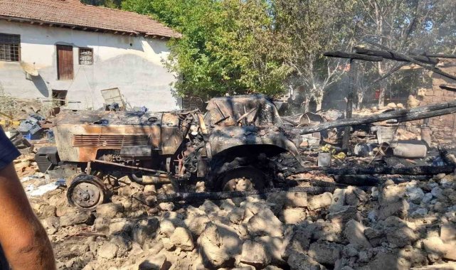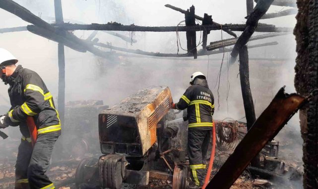 Tokat'ın Erbaa ilçesinde samanlıkta çıkan yangında 2 traktör, 1 buçuk ton buğday, 1 ton gübre, 250 litre mazot ve çeşitli tarım aletleri yanarak kullanılamaz hale geldi.