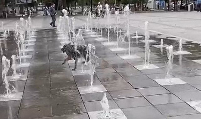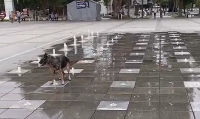 Olay, ilçe merkezindeki Cumhuriyet Meydanı'nda bulunan süs havuzunda yaşandı. Sıcak havanın etkisiyle serinlemek isteyen köpek, fıskiyelerin önüne kendini bırakarak suyla oynamaya başladı. Suların yükselmesiyle birlikte keyfi daha da artan köpeğin neşeli halleri, çevredekilere gülümseten anlar yaşattı. Fıskiyelerin altına giren köpek izleyenlerin ilgisini çekerken, bir vatandaş o anları cep telefonlarıyla kaydetti.