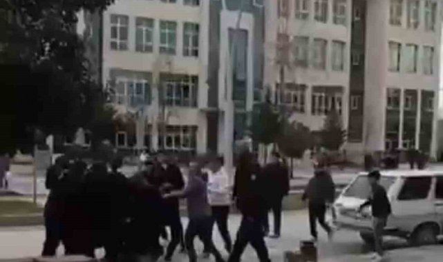 Tokat'ta adliye önünde husumetli iki grubun sopalı ve tabureli kavgası cep telefonu kamerasına yansıdı. Olayla ilgili 9 kişi gözaltına alındı.