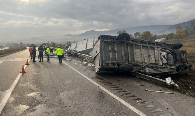 Tokat'ta yapı malzemesi yüklü kamyonete çarpan minibüs sürücüsü yaralandı