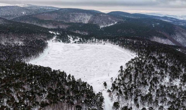 İlçeye bağlı Kızılcaören beldesi yakınlarında bulunan yaz aylarında mesire alanı olarak kullanılan Kurt Gölü, kışın ise farklı bir güzelliğe büründü. Soğuk hava nedeniyle buz tutan göl yüzeyi beyaz örtüyle kaplanırken, yeşil çam ormanlarıyla oluşturduğu manzara dron ile havadan görüntülendi. Doğayla iç içe görüntüler izleyenleri adeta mest etti.