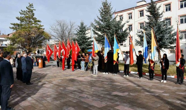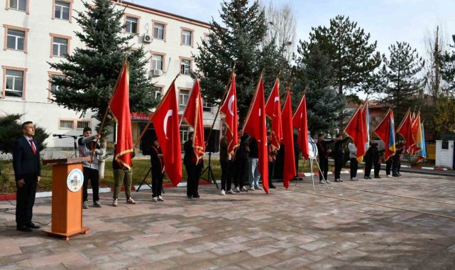Kayseri'nin Tomarza ilçesinde 24 Kasım Öğretmenler Günü nedeniyle çelen sunma töreni düzenledi.