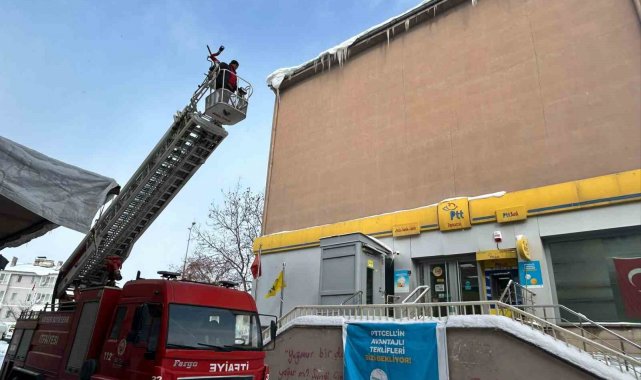 Tomarza'da tehlike saçan buz sarkıtları temizlendi