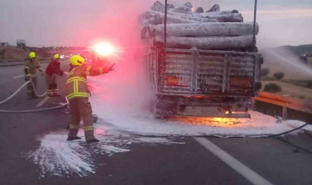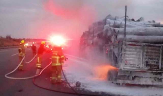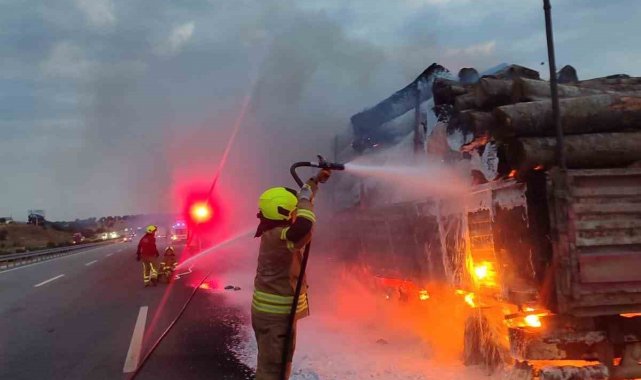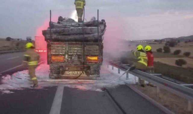 Tomruk yüklü tırda yangın paniği