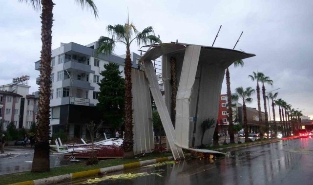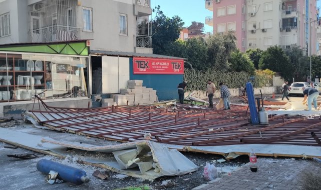 Turizm kenti Antalya'da dün akşam saatlerinde aniden bastıran ve yaklaşık 20 dakika süren şiddetli yağış ve fırtına sırasında birçok noktada hayat olumsuz etkilenmişti. Kentin farklı noktalarında fırtına nedeniyle rüzgarın şiddetine dayanamayan ağaçlar araç ve insanların üzerine devrilmişti. Muratpaşa ilçesi Meydankavağı Mahallesi Perge Bulvarı üzerinde ise bir binanın çatısında bulunan tonlarca ağırlıktaki demir profil ve PVC malzemelerden yapılan yola uçmuştu.